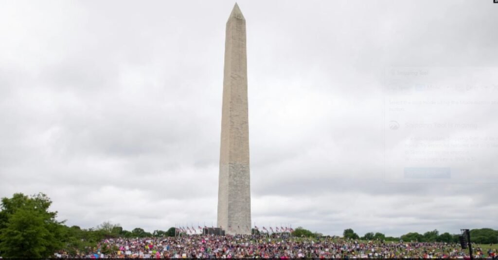 সুপ্রিম কোর্টের উদ্দেশ্যে মিছিল নিয়ে রওয়ানা হবার আগে জ্বালাময়ী ভাষণ শোনার জন্য রাজধানী ওয়াশিংটন ডি.সি.-তে, হাজার হাজার মানুষ ওয়াশিংটন মনুমেন্টে গুঁড়ি গুঁড়ি বৃষ্টি উপেক্ষা করে জড়ো হয়। সুপ্রিম কোর্টটি এখন দুই স্তর বিশিষ্ট নিরাপত্তা বেষ্টনীর মধ্যে ঘিরে রাখা হয়েছে।