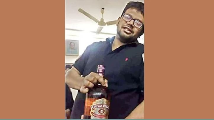 ভাইরাল হওয়া ছবিতে দেখা যায়, অফিস কক্ষের মেঝেতে বিদেশি ব্রান্ডের মদের বোতল হাতে দাঁড়িয়ে এক তরুণ। আর তিনি আরও কেউ নন স্বয়ং জাবির সাবেক আলোচিত ভিসি ফারজানা ইসলামের একমাত্র পুত্র প্রতীক হাসান।