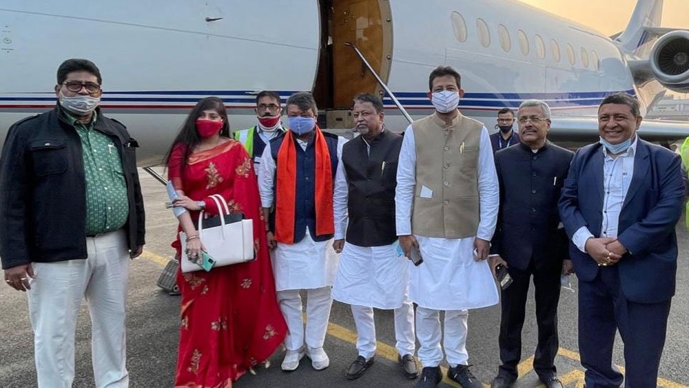 সে দিনের চার্টার্ড বিমান ‘অভিভাবক’ হিসেবে রাজীবদের সঙ্গে ছিলেন মুকুল রায়। তিনি অবশ্য কৃষ্ণনগর উত্তরে জয় পেয়েছেন।