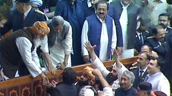 এদিন সকাল সাড়ে ১০টা নাগাদ জাতীয় পরিষদের অধিবেশন শুরু হয়। কিন্তু অনাস্থা ভোটের আগে ইমরান খানের সমর্থক ও বিরোধীদের মধ্যে সংসদের ভেতর তুমল হট্টগোলে জাতীয় পরিষদের স্পিকার সাময়িকভাবে অধিবেশন মুলতবি করেন।