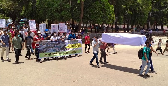 সন্ধান২৪.কম : ব্যর্থ স্বাস্থ্যমন্ত্রী ও ডিজির অপসারণ, দূর্নীতিবাজদের গ্রেফতার ও বিচার এবং বিনামূল্যে করোনা চিকিৎসা নিশ্চিত করার দাবিতে প্রধানমন্ত্রী কার্যালয় অভিমুখে কফিন মিছিল করেছে প্রগতিশীল ছাত্র জোট।