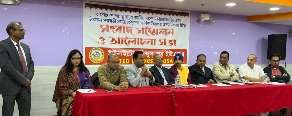 সন্ধান২৪.কম: বাংলাদেশে আসন্ন দ্বাদশ জাতীয় সংসদ নির্বাচন কালীন এবং নির্বাচন পরবর্তী সময়ে হিন্দুদের সার্বিক নিরাপত্তা প্রদান বিষয় নিয়ে সংবাদ সম্মেলন ও আলোচনা সভার আয়োজন করে ইউনাইটেড হিন্দুস্ অব ইউএসএ।