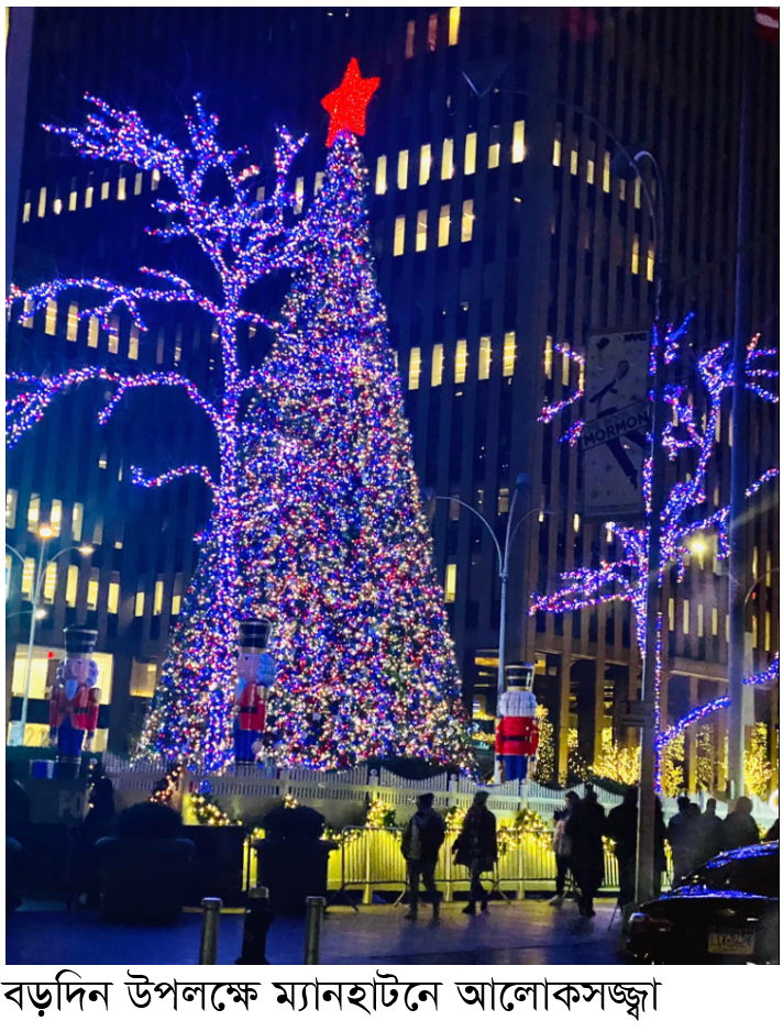 ক্রিসমাসকে কেন্দ্র করে বাঙালি অধ্যুষিত জ্যাকসন হাইটস,জ্যামাইকা,ব্রঙ্কস,ওজনপার্ক, এষ্টোরিয়ার গুরত্বপূর্ণ স্থাপনা ও রাস্তাগুলো আলোক সজ্জ্বায় সাজিয়ে তোলা হয়েছে।