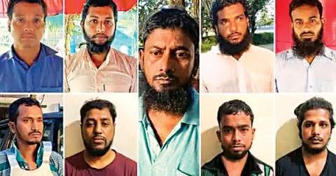 ধৃতদের মধ্যে তিনজনকে কেরলের এর্নাকুলাম থেকে গ্রেপ্তার করেছেন গোয়েন্দারা। নাম—মুর্শিদ হাসান, ইয়াকুব বিশ্বাস, মোশারফ হোসেন। মুর্শিদাবাদের ডোমকল থেকে গ্রেপ্তার করা হয় বাকি ছ’জনকে। নাম—নাজমুস শাকিব, আবু সুফিয়ান, মইনুল মণ্ডল, লিউ ইয়ান আহমেদ, আল-মামুন কামাল ও আতিউর রেহমান। গঙ্গারামপুরের বাসিন্দা নাজমুস কম্পিউটার সায়েন্সের দ্বিতীয় সেমেস্টারের পড়ুয়া। জলঙ্গির ঘোষপাড়ার আতিউরও বিএ পড়ুয়া। নওদাপাড়ার আল-মামুন এবং জলঙ্গির মইনুল পেশায় রাজমিস্ত্রি। লকডাউনে তারা কেরল থেকে ফিরেছিল। রানিনগরের কালীনগর থেকে গ্রেপ্তার হওয়া আবু সুফিয়ান গ্রামে দর্জির কাজ করত। লিউ ইয়ান একটি বেসরকারি কলেজে ইলেক্ট্রিশিয়ান পদে কর্মরত। কেরল থেকে ধৃত রানিনগরের বাসিন্দা, পেশায় রাজমিস্ত্রি মুর্শিদই আল-কায়েদার এই আন্তঃরাজ্য মডিউলের মূল পাণ্ডা বলে দাবি এনআইএয়ের। ধৃতদের বাড়ি থেকে দেশি আগ্নেয়াস্ত্র, বিস্ফোরক তৈরির সামগ্রী, ডিটোনেটর, ল্যাপটপ সহ ডিজিটাল ডিভাইস, ধারালো অস্ত্র, দেশীয় কায়দায় তৈরি বুলেটপ্রুফ জ্যাকেট, আইইডি তৈরির ফর্মুলা এবং বিভিন্ন জেহাদি নথি উদ্ধার হয়েছে। এই ৯ জন জঙ্গির নামে রাষ্ট্রদ্রোহিতার অভিযোগে দিল্লিতে মামলা দায়ের করেছে এনআইএ।