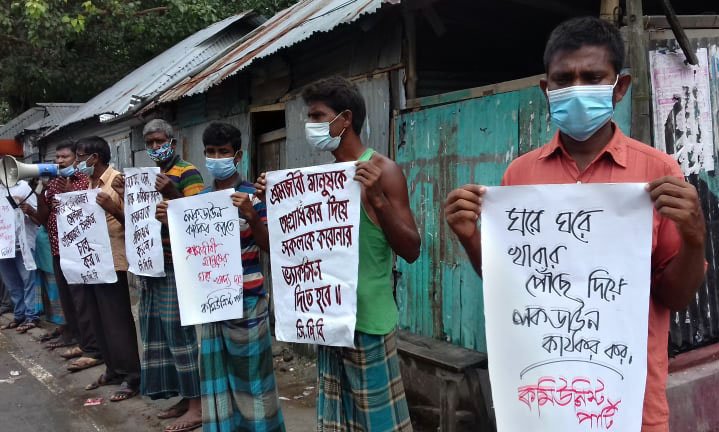 সন্ধান২৪.কমঃ দেশব্যাপী লকডাউন কার্যকর করতে শ্রমজীবী মানুষের জন্য খাদ্য ও নগদ অর্থসহায়তা প্রদানের দাবিতে স্বাস্থ্যবিধি মেনে গাইবান্ধায় মানববন্ধন করেছে বাংলাদেশের কমিউনিস্ট পার্টি, উত্তর গিদারী শাখা।