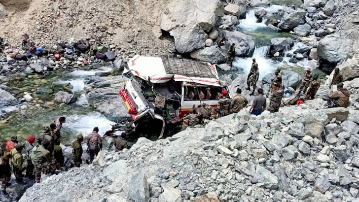 ভারতের লাদাখে সেনাবাহিনীর একটি গাড়ি নিয়ন্ত্রণ হারিয়ে খাদে পড়ে গেলে ৭ জওয়ান নিহত এবং আরও ১৯ জন গুরুতর আহত হয়েছেন।