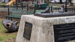 ক্যালিফোর্নিয়ার ডেভিস অঞ্চলের সেন্ট্রাল পার্কে শোভা পেত সাড়ে ছ’ ফুট লম্বা ৬৫০ পাউন্ড (২৯৪ কেজি) ব্রোঞ্জের মূর্তিটি। সেটিকে গোড়ালি থেকে করাত জাতীয় কিছু দিয়ে কেটে ফেলা হয়েছে। মুখাবয়বের অর্ধেক কিছু অংশ কেটে ফেলা হয়েছে এবং সেই অংশ উধাও।