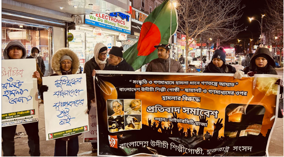 সন্ধান২৪.কম: বাংলাদেশ উদীচী শিল্পী গোষ্ঠী-ছায়ানট  ও গণমাধ্যমের উপর হামলার বিরুদ্ধে প্রতিবাদ সমাবেশ হয়েছে আমেরিকার নিউইয়র্ক শহরে ।