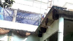 জানা যায়, প্রায় ৩০ বছর ধরে মৌমাছির দল ওই বাড়ির দেয়ালে বাসা বাঁধে। দেখলে মনে হয় মৌমাছি যেন পুরো বাড়ি দখল করে রেখেছে।বাড়িটির কার্নিশে দখল নিয়েছে এরা।