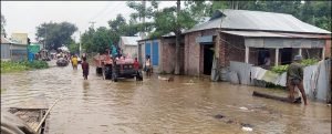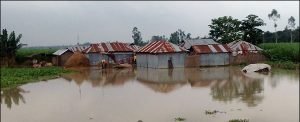 ছবি ঃ আমারজেলা ডট নিউজব্রহ্মপুত্র অববাহিকার নদ-নদীগুলোর মধ্যে ধরলা কুড়িগ্রাম পয়েন্টে বিপৎসীমার ৪১ সেন্টিমিটার, তিস্তা নদী নীলফামারীর ডালিয়া পয়েন্টে বিপৎসীমার ১৮ সেন্টিমিটার, বহ্মপুত্র নদ কুড়িগ্রামের নুনখাওয়া পয়েন্টে বিপৎসীমার ২১ সেন্টিমিটার এবং চিলমারী পয়েন্টে ৩৫ সেন্টিমিটার, যমুনা নদী গাইবান্ধার ফুলছড়ি পয়েন্টে বিপৎসীমার ২৫ সেন্টিমিটার এবং জামালপুরের বাহাদুরাবাদ পয়েন্টে বিপৎসীমার ১৮ সেন্টিমিটার উপর দিয়ে বইছিল।আর মেঘনা অববাহিকার নদ-নদীগুলোর মধ্যে সুরমা নদী সিলেটের কানাইঘাট পয়েন্টে বিপৎসীমার ৪০ সেন্টিমিটার, কুশিয়ারা নদী সুনামগঞ্জ পয়েন্টে বিপৎসীমার ৪৬ সেন্টিমিটার এবং যাদুকাটা নদী সুনামগঞ্জের লরেরগড় পয়েন্টে বিপৎসীমার ১২১ সেন্টিমিটার উপর দিয়ে বয়ে যাচ্ছিল।