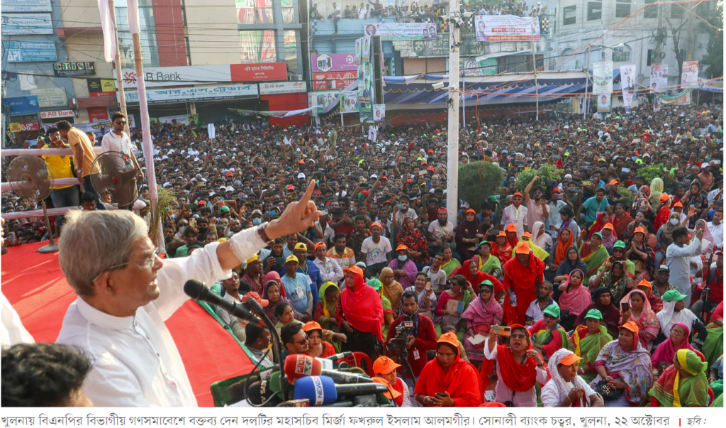 বিএনপি মহাসচিব বলেন, আমাদের বয়স হয়েছে তারপরও লড়াই করছি। মূল দায়িত্ব তরুণদের উপরে, লড়াইয়ে জিততে হবে। আমরা শান্তিপূর্ণ কর্মসূচি করছি, সহিসংসতা করছি না। আমাদের উপর হামলা করে পার পাবেন না। বিদেশিরা বুঝে গেছে, আপনারা সন্ত্রাসের দল। হামলা করে ক্ষমতায় টিকে আছেন।
