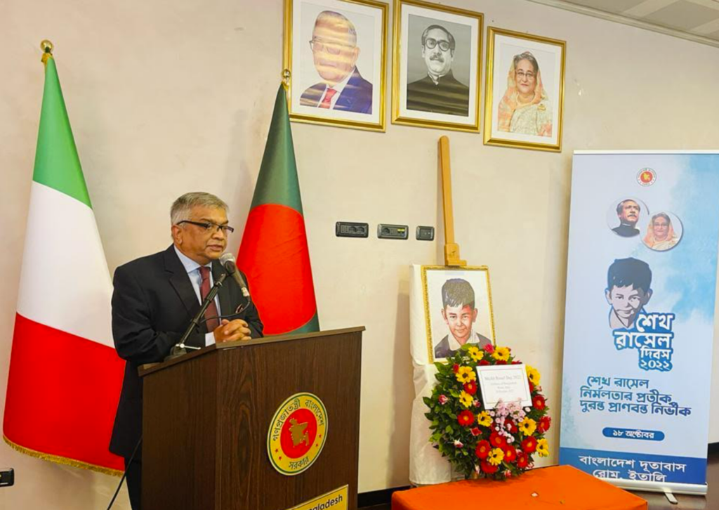 সন্ধান২৪.কম : রোমস্থ বাংলাদেশ দূতাবাস ১৮ অক্টোবর জাতির পিতা বঙ্গবন্ধু শেখ মুজিবুর রহমানের কনিষ্ঠ পুত্র শহিদ শেখ রাসেল এর ৫৮তম জন্মবার্ষিকী উদযাপন করেছে।