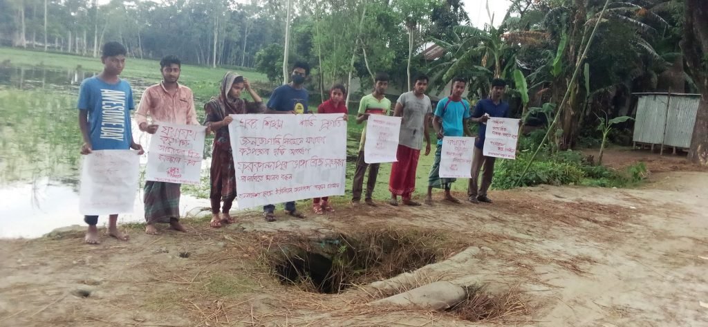 ছাত্র ইউনিয়ন ঢোলভাঙ্গা অঞ্চল শাখা উদ্যেগে এ মানববন্ধন অনুষ্ঠিত হয়। মানববন্ধন চলাকারে বক্তব্য রাখেন বাংলাদেশ ছাত্র ইউনিয়ন গাইবান্ধা জেলা সংসদের সাধারণ সম্পাদক ওয়ারেছ সরকার, জেলা সংসদ সদস্য ফরিদ মিয়া, ঢোলভাঙ্গা জাতীয় কবি কাজী নজরুল ইসলাম স্মৃতি পাঠাগার এর সভাপতি মনিকা আক্তার, সদস্য নুরি আক্তার, গ্রামবাসীর পক্ষে আরিফ মিয়া, বাবু মিয়া প্রমূখ। বক্তারা বলেন, দীর্ঘদিন থেকে ব্রীজটি ভেঙ্গে মানুষের চলাচলের অনুপযোগি হয়ে পড়ে থাকলেও কর্তৃপক্ষ সংস্কারের উদ্যোগ নিচ্ছে না। এতে কয়েক গ্রামের মানুষ চরম দুর্ভোগে পড়েছে এবং প্রতিনিয়ন ঘটছে দুর্ঘটনা। তারা অবিলম্বে রাস্তা সংস্কার ও ব্রীজ নির্মাণের দাবি জানান।