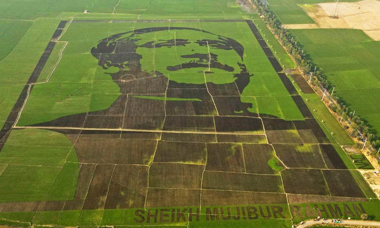শস্যচিত্রে বঙ্গবন্ধুর প্রতিকৃতি। ছবি: সংগৃহীত