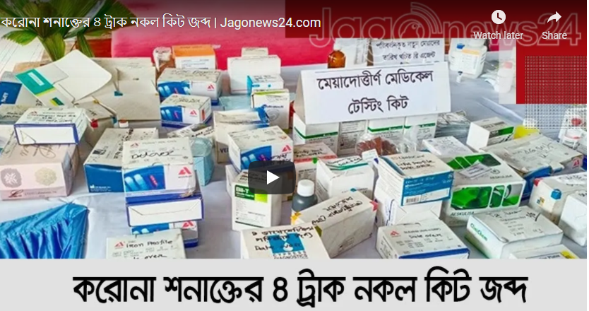 র্যাপিড অ্যাকশন ব্যাটালিয়ন (র্যাব) শুক্রবার রাজধানী ঢাকায় চারটি ট্রাক ভরতি অনুমোদনহীন মেডিক্যাল পণ্য, মেয়াদ উত্তীর্ণ করোনা পরীক্ষার কিট ও রি-এজেন্ট উদ্ধার করেছে । এই ঘটনায় ন’জনকে গ্রেপ্তার করা হয়েছে বলে জানিয়েছেন র্যাব-২-এর জনসংযোগ আধিকারিক আবদুল্লা আল মামুন। তিনি আরও জানান, গোপন খবরের ভিত্তিতে রাজধানীর বনানী ও মহম্মদপুরের ৩টি প্রতিষ্ঠানে রাতভর অভিযান চালায় র্যাব-২। প্রতিষ্ঠানগুলো হচ্ছে বায়োল্যাব ইন্টারন্যাশনাল, হাইটেক হেলথ কেয়ার ও এক্সন টেকনোলজি অ্যান্ড সার্ভিসেস লিমিটেড। বাজেয়াপ্ত হওয়া ট্রাকগুলি থেকে ১২ টন চিকিৎসা সামগ্রী জব্দ করা হয়। করোনা, এইচআইভি ও রক্ত-সহ সব পরীক্ষার রি-এজেন্ট ছিল সেখানে। মেয়াদ উত্তীর্ণ টেস্ট কিটগুলির মেয়াদ বাড়িয়ে বাজারে বিক্রি করার ছক ছিল জালিয়াতদের।