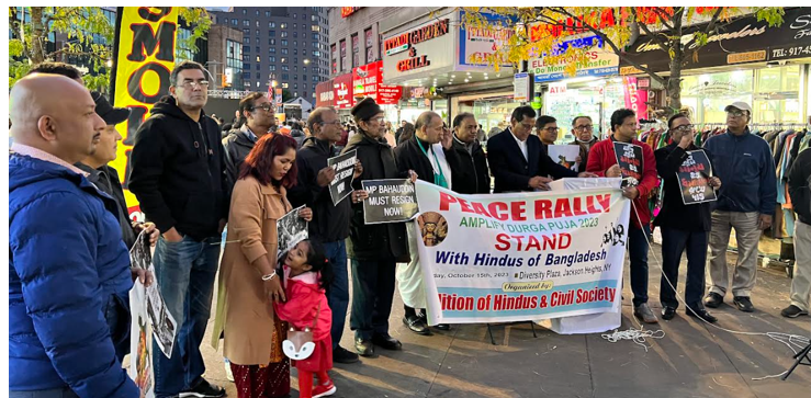 বাংলাদেশের যুক্তরাষ্ট্র প্রবাসী সংখ্যালঘু সম্প্রদায়ের ‘ইউনিটি অব হিন্দুস্’ এবং সিভিল সোসাইটি এই সমাবেশের আয়োজন করে।