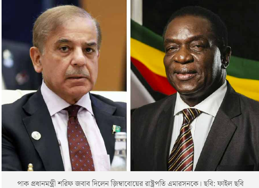 রাজনৈতিক মহলেও জিম্বাবোয়ে-পাকিস্তান ম্যাচের উত্তাপ ছড়াল । জিম্বাবোয়ের রাষ্ট্রপতি এমারসন ডাম্বুডজ়ো নানগাগওয়ার রসিকতার জবাব দিলেন পাকিস্তানের প্রধানমন্ত্রী শাহবাজ় শরিফ।