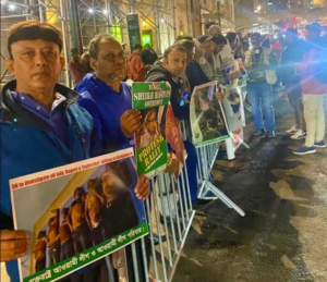 অপর দিকে দুটি সমাবেশে আওয়ামী লীগ বাংলাদেশের অন্তর্র্বতী সরকারকে অবৈধ আখ্যা দিয়ে সরকার প্রধান ড. মুহাম্মদ ইউনূসকে যুক্তরাষ্ট্রের মাটিতে অবাঞ্ছিত ঘোষণা করে। সমাবেশে ৫ আগস্টের পর দেশের ৫ হাজারের বেশি মানুষ খুন হয়েছে বলে দাবী করে ড. ইউনুসের বিরুদ্ধে বিচার চেয়েছে।