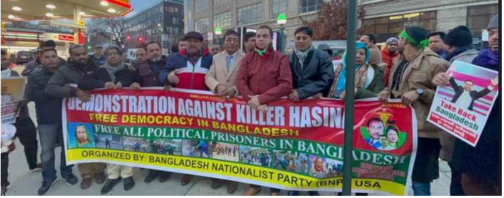 জ্যাকসন হাইটসের ডাইভারসিটি প্লাজায় বিক্ষোভ সমাবেশের আগে বিএনপির নেতা-কর্মীরা মিছিল নিয়ে ৭৩ ও ৭৪ ষ্ট্রীট প্রদক্ষিণ করে।
