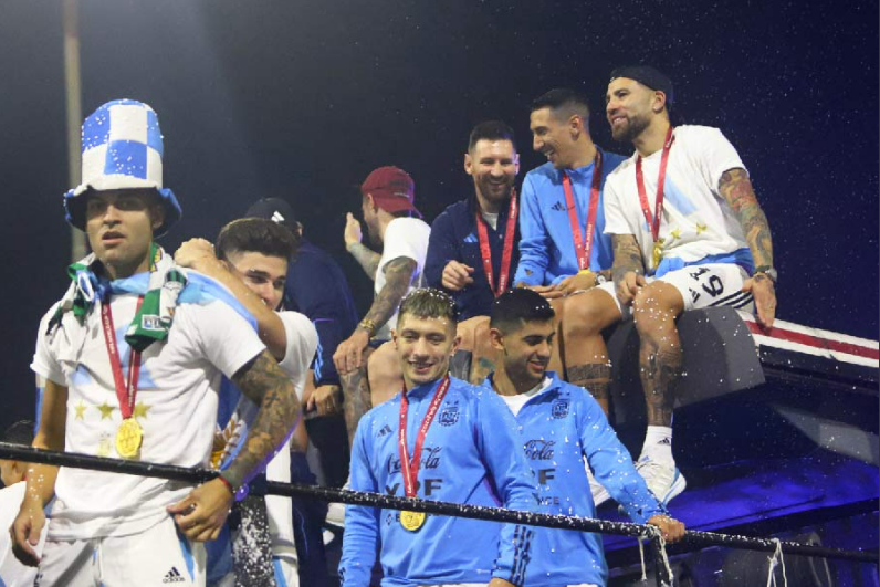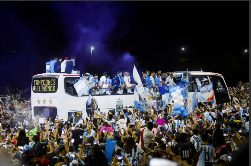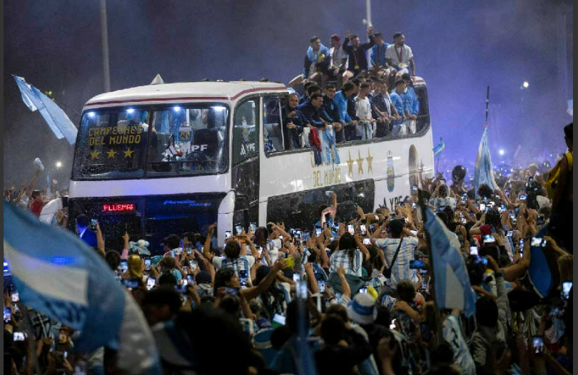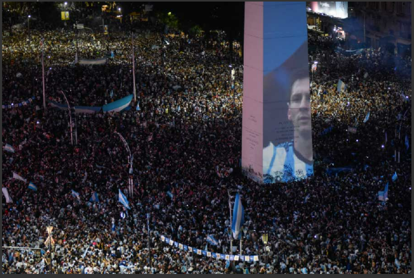 জায়গায় জায়গায় মাইকে চালানো হয় সে দেশের জাতীয় সঙ্গীত। নাচে-গানে-উন্মাদনায় ভরে যায় বুয়েনস আইরেসের রাস্তা। আকাশ ভরে গিয়েছিল রংবেরঙের আলো এবং নীল-সাদা আবিরে।মেসিদের গাড়ি শহরের মাঝামাঝি থাকা বিখ্যাত ওবেলিস্ক মিনারের কাছাকাছি পৌঁছতে আপ্লুত হন মেসিরা।