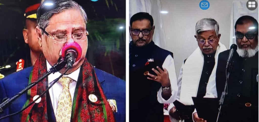 সন্ধান২৪.কম: দ্বাদশ জাতীয় সংসদ নির্বাচনে ২২২ আসনে জয়লাভ করে একক সংখ্যাগরিষ্ঠতা পেয়ে টানা চতুর্থবারের মতো সরকার গঠন করেছে আওয়ামী লীগ। বঙ্গভবনে নতুন সরকারের মন্ত্রীদের শপথের মধ্য দিয়ে তাদের অভিষেক হয়। রাষ্ট্রপতি মো. সাহাবুদ্দিন বৃহস্পতিবার সন্ধ্যায় নতুন মন্ত্রিসভার সদস্যদের শপথ পড়ান।