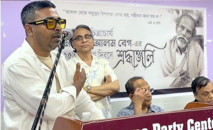 অনুষ্ঠানের শুরুতেই উপস্থিত সবাই প্রয়াত মনজুর আলম বেগের প্রতিকৃতিতে ফুল দিয়ে শ্রদ্ধা জানান।