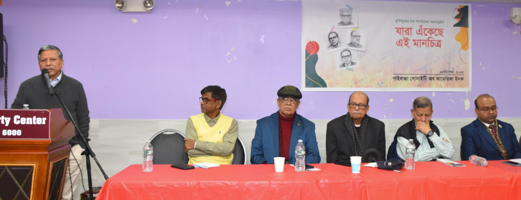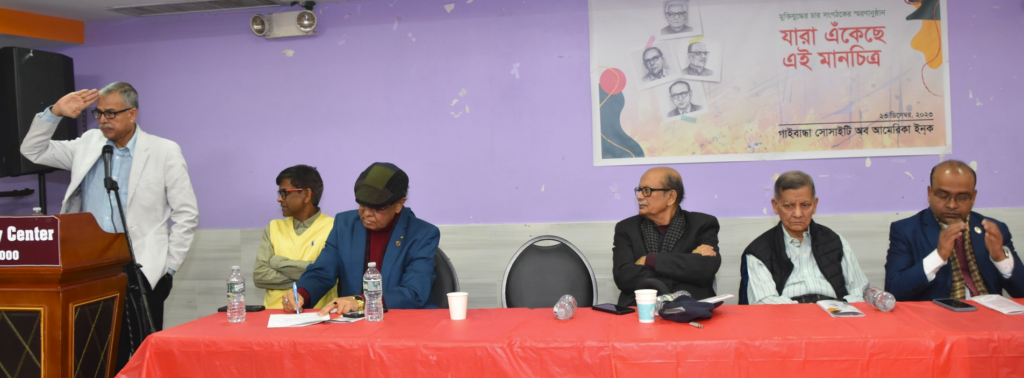 সন্ধান২৪.কম: ১৯৭১ সালে মুক্তিযুদ্ধকে সংগঠিত করার জন্য গাইবান্ধায় মুক্তিযুদ্ধের প্রাক্কালে গঠিত ‘মহকুমা সংগ্রাম পরিষদ‘র প্রয়াত চার সংগঠককে স্মরণ করলো নিউইয়র্কের প্রবাসী বাংলাদেশিরা। রেসকোর্স ময়দানে ৭ মার্চে বঙ্গবন্ধু তার ভাষণে প্রতিটি এলাকায় সংগ্রাম কমিটি গঠনের নির্দেশ দেন। তার সেই নিদের্শেই গাইবান্ধা মহকুমায় সংগ্রাম পরিষদ গঠন করা হয়।