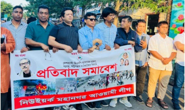 ৩০ জুলাই রোববার জ্যাকসন হাইটসের ডাইভারসিটি প্লাজায় প্রতিবাদ সমাবেশে উপস্থিত বক্তব্য রাখেন নিউইয়র্ক মহানগর আওয়ামী লীগের ভারপ্রাপ্ত সভাপতি রফিকুর রহমান,সহ-সভাপতি এম উদ্দীন আলমগীর,সহ-সভাপতি বাবুল আহমদ,যুগ্ম সাধারণ সম্পাদক সৈয়দ ইলিয়াস খসরু,যুগ্ম সম্পাদক শিবলী সাদিক শিবলী,সাংগঠনিক সম্পাদক মাহফুজুল হক হায়দার,সাংগঠনিক সম্পাদক সুমন আহমদ,তথ্য প্রযুক্তি সম্পাদক গোলাম হাসান,ব্রঙ্কস বরো আওয়ামীলীগের সভাপতি আব্দুল মুহিত,সাধারণ সম্পাদক মোশাহিদ চৌধুরী,উপদেষ্টা তোফাজ্জল আলী,সদস্য আবুল কাসেম প্রমূখ।
