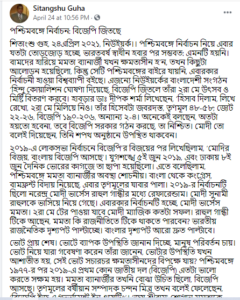 বিজেপি জিতলে জ্যাকসন হাইটসে নিউইয়র্কের বাংলাদেশী সংগঠন ‘হিন্দু কোয়ালিশ ‘  ২রা মে উৎসব ও মিষ্টি বিতরণ করবে-এমন  একটি ঘোষনা দেয়া হয়েছিল শিতাংশু গুহর ফেসবুক ওয়ালে।