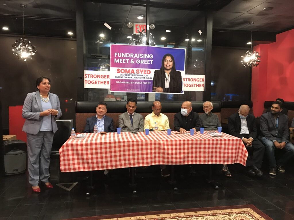 সন্ধান২৪.কম : নিউইয়র্ক সিটির কুইন্স কাউন্টির জজ পদে প্রতিদ্বন্দ্বিতাকারী ডেমোক্র্যাট দলীয় প্রার্থী এটর্নী সোমা সাঈদের ফান্ড রেইজিং অনুষ্ঠানে বক্তারা আগামী ২ নভেম্বর মঙ্গলবারের নির্বাচনে তাকে ভোট দিয়ে জয়যুক্ত করার আহ্বান জানিয়েছেন। বক্তারা বলেন, একজন বাংলাদেশী-আমেরিকান হিসেবে সোমা প্রাইমারী নির্বাচনে জয়ী হয়ে ইতিহাস সৃষ্টি করেছেন। আসন্ন নির্বাচনে তাকে বিজয়ী করে এই ইতিহাসের ধারা এগিয়ে নিয়ে যেতে হবে। কেননা, বাংলাদেশী কমিউনিটি নিউইয়র্কের উদীয়মান কমিউনিটি এবং মূলধারার রাজনীতিতে বাংলাদেশীদের অবস্থান সুদৃঢ় হচ্ছে।