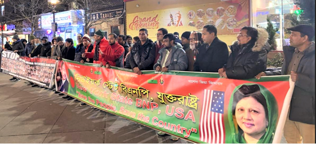 জ্যাকসন হাইটসে ডাইভার্সিটি প্লাজায় অনুষ্ঠিত এ কর্মসূচিতে বিএনপির মূলদলসহ ছাত্রদল, যুবদল,শ্রমিক দল, জাসাসের নেতা-কর্মীরা অংশ নেন। এতে প্রধান অতিথি ছিলেন যুক্তরাষ্ট্র বিএনপির সাবেক সহ-সভাপতি জামাল আহমেদ জনি।