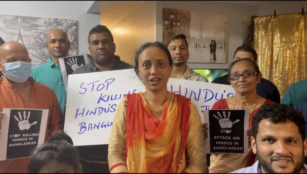 সন্ধান২৪.কম : বাংলাদেশের বিভিন্ন জায়গায় সনাতনী হিন্দু সম্প্রদায়ের বসতবাড়ি, মন্দির,পূজা মণ্ডপে হামলা এবং প্রতিমা ভাংচুরের তীব্র নিন্দা ও প্রতিবাদ জানিয়েছেন যুক্তরাষ্ট্রের নিউজারসি রাজ্যের সাউথ জার্সিতে বসবাসরত প্রবাসী হিন্দু সম্প্রদায়। গত ২০ অক্টোবর বুধবার রাতে আটলান্টিক সিটির ১৪১১, পেনরোজ এভিনিউর একটি ভেনুতে এই প্রতিবাদ সভা অনুষ্ঠিত হয়।