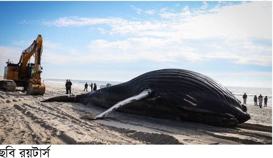 সন্ধান২৪.কমঃ নিউইয়র্কের লং আইল্যান্ড সমুদ্র সৈকতে ১১ মিটার দীর্ঘ একটি তিমি আটকা পড়ে মারা যায়। এটি বিরল প্রজাতির এক স্তন্যপায়ী হাম্পব্যাক (কুঁজো) তিমি।