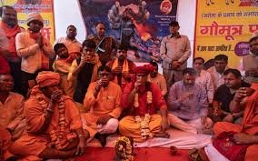 বিজেপির একাংশের নেতা করোনা আটকাতে গোমূত্র ও গোবর ব্যবহারের জন্য প্রচার চালিয়ে যাচ্ছেন। চিকিৎসকরা বারবার এই সমস্ত পদ্ধতি গ্রহণ করতে নিষেধ করলেও মানুষের মধ্যে দেখা যাচ্ছে সচেতনতার অভাব। সম্প্রতি আমদাবাদের এক গোশালার ভিডিয়ো ভাইরাল হয়েছে। সেখানে মানুষ ভিড় করে গায়ে গোবর মেখে যোগাসন করছিলেন। তাঁদের দাবি, কোভিড তাড়ানোর এ এক মোক্ষম দাওয়াই। এই ভিডিয়ো প্রকাশ পেতেই সমাজবাদী পার্টির নেতা অখিলেশ যাদব টুইট করেছেন, ‘এ সব দেখে দেখে হাসব না কাঁদব বুঝতে পারছি না।’