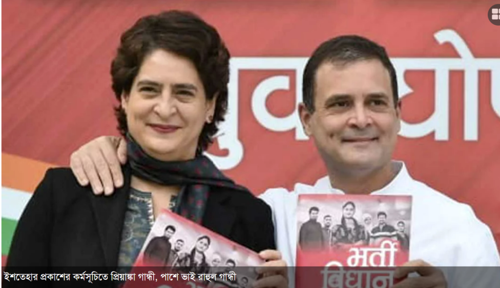 সন্ধান২৪.কমঃ প্রিয়াঙ্কা গান্ধী উত্তর প্রদেশে কংগ্রেসের মুখ্যমন্ত্রীর মুখ হতে পারেন ! উত্তর প্রদেশের নির্বাচনকে সামনে রেখে কর্মসংস্থানের পরিকল্পনার রূপরেখা নির্ধারণ করে একটি ইশতেহার প্রকাশের কর্মসূচি ছিল শুক্রবার। সেখানেই তাকে এক সাংবাদিক প্রশ্ন করেন, মুখ্যমন্ত্রী পদের জন্য কংগ্রেসের মুখ কে? তার উত্তরে প্রিয়াঙ্কা বলেন, ‘আপনি কি অন্য কোনো মুখ দেখতে পাচ্ছেন?’ প্রিয়াঙ্কার এই কথাতেই জল্পনা ছড়ায়। প্রশ্ন ওঠে, তা হলে তিনিই কি উত্তর প্রদেশে কংগ্রেসের মুখ্যমন্ত্রীর মুখ? তার নিজের কথাতেই ছড়াল এই জল্পনা।