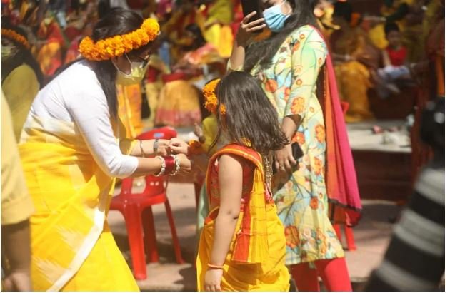 বসন্তবরণের সুন্দর মুহূর্তটি সেলফিতে ধরে রাখছেন অনেকে