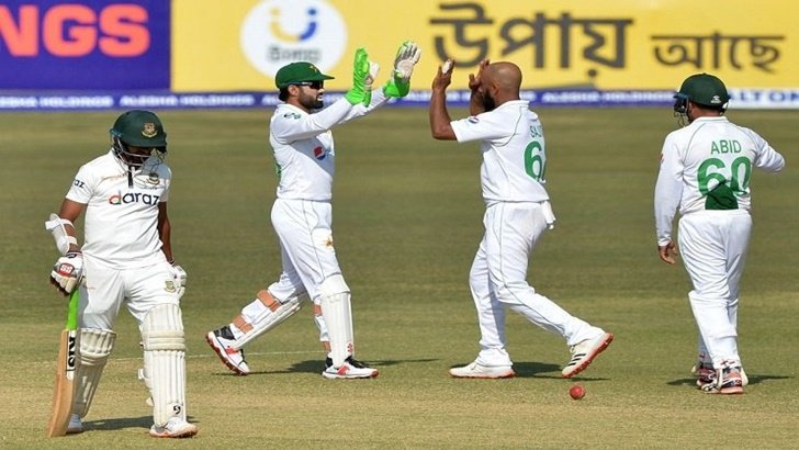 এক প্রান্ত আগলে প্রতিরোধ চালিয়ে যাচ্ছিলেন তিনে নামা নাজমুল হোসেন শান্ত। তবে সঙ্গীর অভাবে তিনিও শেষ পর্যন্ত ভেঙে পড়েন। ৯১ বল থেকে ৮ চারে ৪২ রান করে আলজারি জোসেফের বলে উইকেটের পেছনে তালুবন্দি হয়ে ফেরেন শান্ত। শান্ত ফেরার আগেই অবশ্য সাঙ্গ হয়েছিল এই টেস্টে লিটন দাসের যাত্রাও। ৩২ বলে ১৯ রান করে তিনি আউট হয়েছেন জেডেন সিলসের বলে এলবিডব্লিউর ফাঁদে পড়ে।