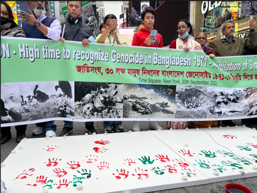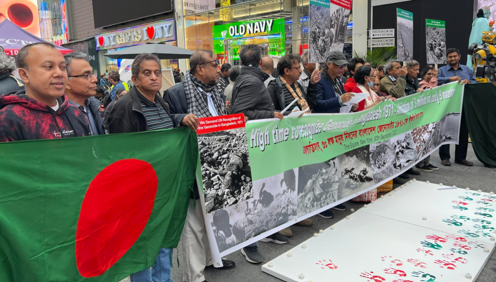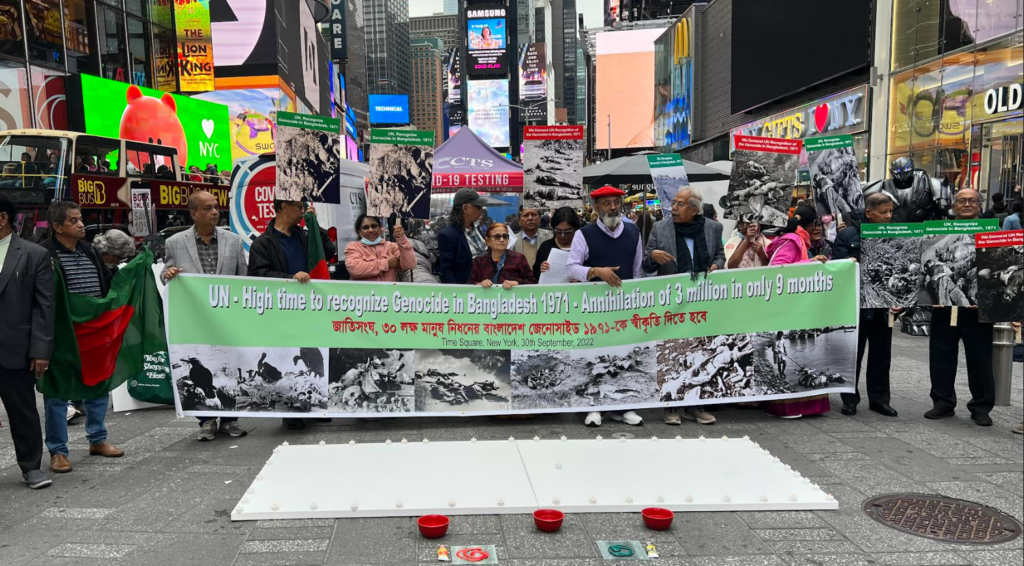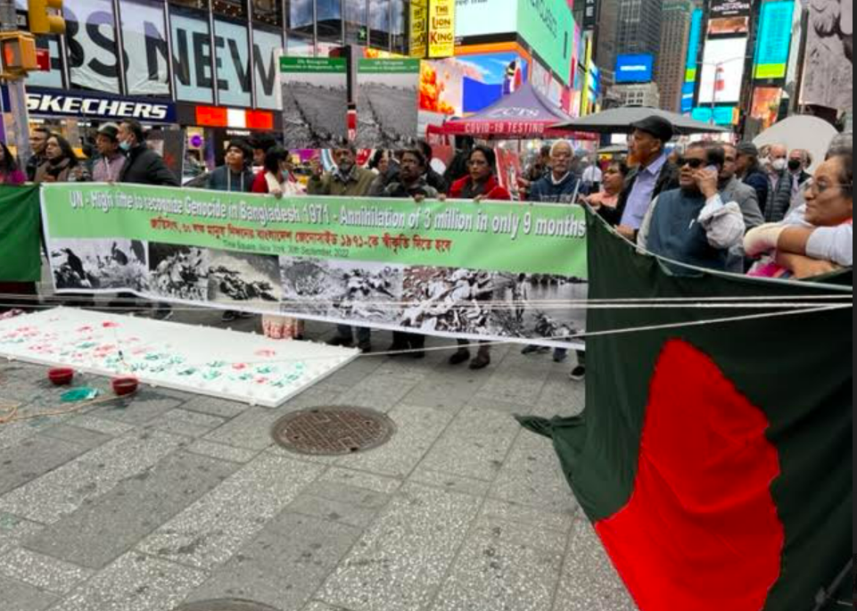 সন্ধান২৪.কমঃ ৩০ লক্ষ মানুষ নিধনের বাংলাদেশ জেনোসাইড ১৯৭১কে স্বীকৃতি দিতে জাতিসংঘের প্রতি আহ্বান জানিয়ে বিশ্বের রাজধানী হিসেবে খ্যাত নিউইয়র্কের টাইম স্কয়ারে এক সমাবেশের আয়োজন করা হয়।