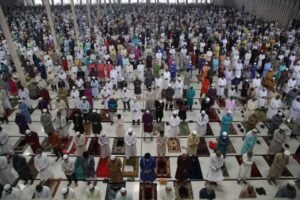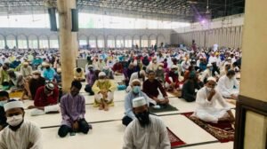 সন্ধান২৪.কমঃ শুক্রবার (১৪ মে) সকাল ৭টায় জাতীয় মসজিদ বায়তুল মোকাররমে পবিত্র ঈদুল ফিতরের প্রধান জামাত অনুষ্ঠিত হয়েছে। ঈদের প্রধান এই জামাতে সর্বস্তরের মুসলমানরা অংশ নেন। জামাত শেষে মোনাজাতে মহামারি করোনা থেকে মুক্তির প্রার্থনা করা হয়। জামাতে মুসল্লিরা মাস্ক পরে এবং সামাজিক দূরুত্ব বজায় রেখে অংশগ্রহণ করেন।