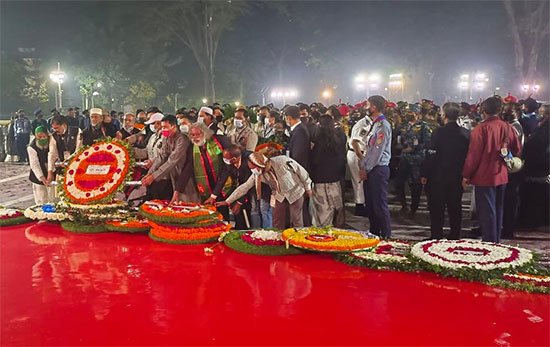 বিনম্র শ্রদ্ধায় জাতির শ্রেষ্ঠ সন্তান ভাষাশহীদদের স্মরণ করছেন বাঙালিরা। একুশের প্রথম প্রহরেই কেন্দ্রীয় শহীদ মিনারের বেদিতে ফুল দিয়ে শ্রদ্ধা নিবেদন শুরু হয়। রোববার দিবাগত রাত ১২টা ১ মিনিটে প্রেসিডেন্ট মো. আবদুল হামিদ ও প্রধানমন্ত্রী শেখ হাসিনার পক্ষে তাঁদের সামরিক সচিবেরা কেন্দ্রীয় শহীদ মিনারে ফুল দিয়ে শ্রদ্ধা জানান। প্রথমে প্রেসিডেন্টের পক্ষে তাঁর সামরিক সচিব মেজর জেনারেল এস এম সালাহউদ্দিন ইসলাম ও এরপর প্রধানমন্ত্রীর পক্ষে তাঁর সামরিক সচিব মেজর জেনারেল নকিব আহমেদ চৌধুরী শহীদ মিনারে পুষ্পস্তবক অর্পণ করেন। এরপর জাতীয় সংসদের স্পিকার শিরীন শারমিন চৌধুরীর পক্ষে পুষ্পস্তবক অর্পণ করেন সংসদ সচিবালয়ের সার্জেন্ট অ্যাট আর্মস এম এম নাঈম রহমান।