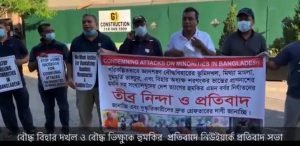 সন্ধান২৪.কম : চট্টগ্রামের রাঙ্গুনিয়ায় একজন প্রভাবশালীর মদদে সন্ত্রাসী বাহিনীর নেতৃত্বে বৌদ্ধ বিহারের জমি দখল, বৌদ্ধ ভিক্ষুর প্রাণনাশের চেস্টা, দেশ ত্যাগের হুমকি, পবিত্র বুদ্ধ মুর্তি ও বৌদ্ধ বিহারে ভাঙচুরের প্রতিবাদে ১২ জুলাই আমেরিকার নিউইয়র্কে প্রতিবাদ সমাবেশ ও মানববন্ধন অনুষ্ঠিত হয়েছে।