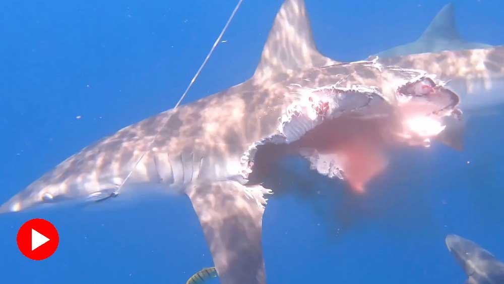 ভয়ঙ্কর ভিডিয়ো,পেটের নীচ থেকে খুবলে খাওয়া অবস্থাতেই শিকার করছে হাঙর!