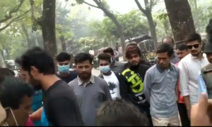সন্ধান২৪.কম :এক উদ্যানে বসে আড্ডা দিচ্ছে আর ধূমপান করছে তরুণ-তরুণী। এ সময় তাদের লক্ষ্য করে এগিয়ে আসে শার্ট-প্যান্ট আর মাথায় টুপি পরা এক ব্যক্তি। তার পিছু নেয় আরও কয়েকজন। শুরু থেকেই মোবাইল ক্যামেরায় ভিডিও ধারণ করা হচ্ছিল। দ্রুতই আরও অনেক মানুষ জড়ো হয়।