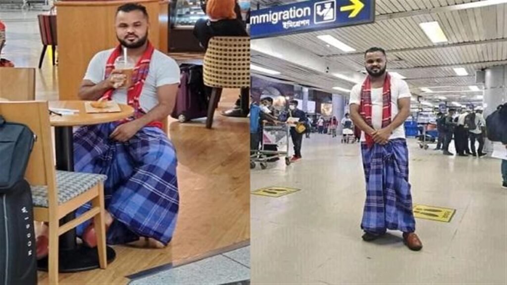 সন্ধান২৪.কমঃ বাংলাদেশী লুঙ্গির কদর দুনিয়াজোড়া। কিন্তু তাই বলে লুঙ্গি পরে আমেরিকায় গিয়ে ভাইরাল! হ্যাঁ, সেই লুঙ্গি–গেঞ্জি পোশাকেই আমেরিকা মাতিয়ে দিলেন জুয়েল মিয়া নামে এক যুবক। লুঙ্গি–গেঞ্জি পোশাকে তাঁর নানান ছবি এখন ভাইরাল সোশ্যাল মিডিয়ায়। জুয়েল হবিগঞ্জের ছেলে। গত ফেব্রুয়ারিতে তিনি বাংলাদেশে যান। ১৭ মার্চ ফিরে যান আমেরিকায়। আর ফেরার পথেই তাঁর পরনের পোশাক হয়ে যায় ভাইরাল।