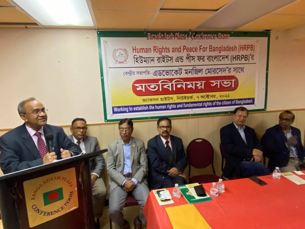 সভায় এডভোকেট মনজিল মোরসেদ তার বক্তব্যে বাংলাদেশের মানবাধিকারের চিত্র তুলে ধরে বলেন, বাংলাদেশের অর্থনীতিতে বিরাট অবদান রয়েছে প্রবাসীদের। প্রবাসীরা বাংলাদেশের উন্নয়ন সহযোগি হিসেবে কাজ করছে। কিন্তু দীর্ঘদিন ধরে যেসব বাংলাদেশী আমেরিকা, ইউরোপসহ বিশ্বের বিভিন্ন দেশে স্থায়ীভাবে বসবাস করছেন তাদের অনেকের উত্তরাধিকার সূত্রে প্রাপ্ত ও নিজের কেনা সম্পত্তি নিয়ে নানা ভাবে বিড়ম্বনার শিকার হন। আইনী জটিলতার কারণে প্রবাসীদের স্বার্থ সুরক্ষা ব্যহত হয়। তাই প্রবাসীদের সম্পদ ও সম্পত্তির নিরাপত্তা সহ তাদের স্বার্থ সুরক্ষায় বিশেষ ট্রাইবুনাল গঠন এখন সময়ের দাবী।